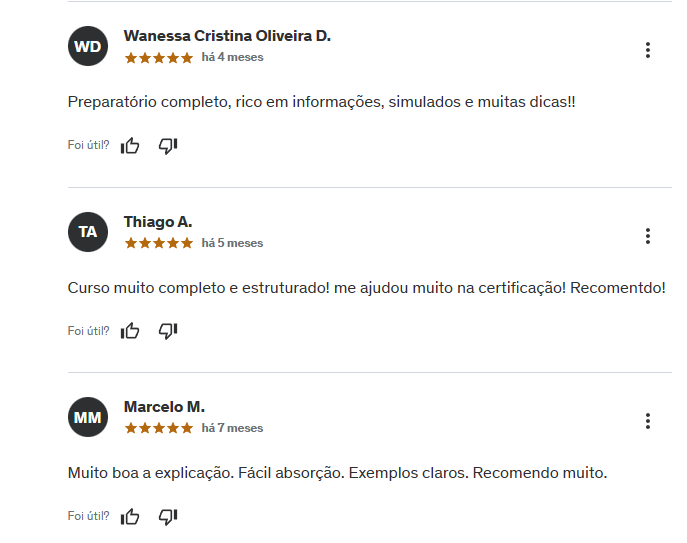 Sim, oferecemos questões de fixação ao longo do curso, em português, e 2 Simulados, em Inglês, para ajudar a solidificar o conhecimento e prepará-lo para o exame.